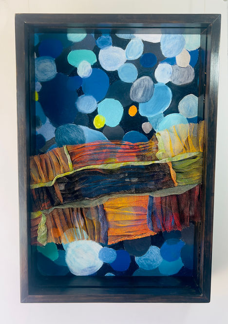 Previously my work has been themed around water, ocean and waves. “Folding time” also considers the ocean, but as a point of difference, it considers waters' history within Australia’s centre. Just metres from my front door there are rocks that show evidence of an inland sea. Before the Macdonell range was formed millions of years ago, the interior seabed floor imprinted its patterns in rocks that now lay scattered around my home. I find it fascinating how these patterns are mirrored on every part of the planet, both on land and water in macro and microcosmic scales. The ripple patterns are ubiquitous and always have been. This fossilised rock beneath my feet connects me with time immemorial.